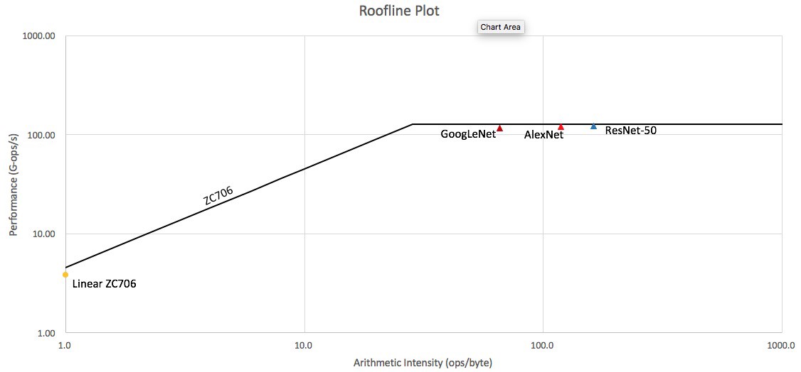 We also report snowflake arithmetic intensity in the figure below. This is the number of operations performed on a byte of data. As you can see all neural network models tested perform at the maximum (roofline) efficiency of the device. On the other hand linear layers have very little data re-use and are limited by memory bandwidth constraints.