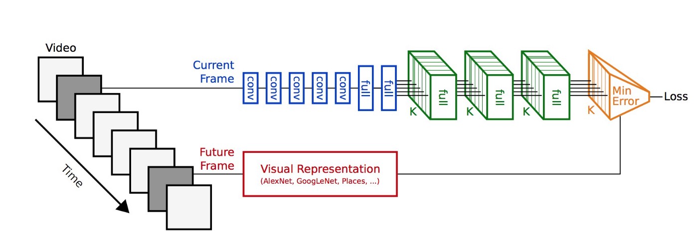 Predicting the future frame is in fact not necessary. What we would like to do is to predict future representations of next frames, just like Carl Vondrick does.