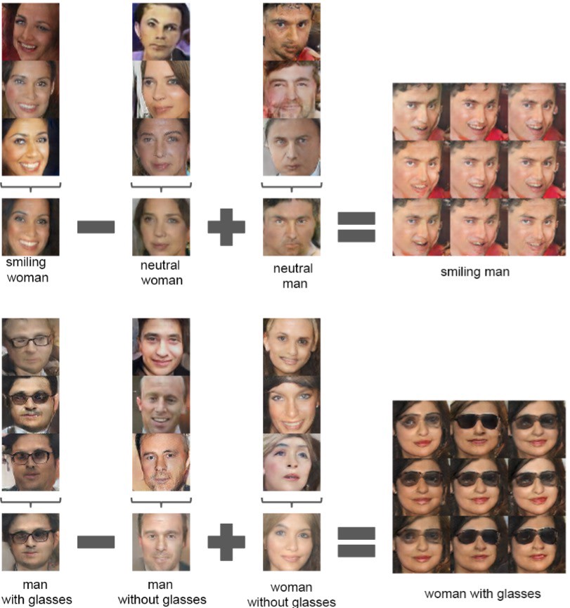 Also the input vector space offers mathematical properties, showing the learned features are organized by similarity: