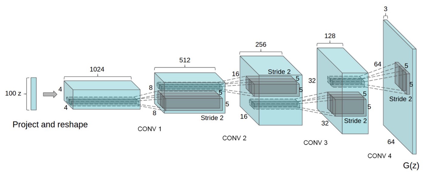 The DCGAN discriminator is designed to tell if an input image is real, or coming from the dataset, or fake, coming from the generator. The generator takes a random noise vector (say 1024 values) at the input and generates an image.