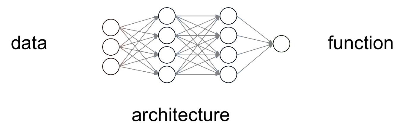 The promise of neural networks, like the one below, was that most of the algorithm could be learned directly from data, if only we provided examples of input and desired outputs.