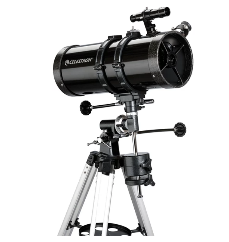 - beginner telescope and tripod like the: Celestron PowerSeeker 127EQwhich is enough to start learning how to point a telescope and how the sky rotate around you and you have to manually track it! It will be hard to see planets in detail with this, but you can get really good observing the moon, and bright targets like Andromeda, and the Orion Nebula.